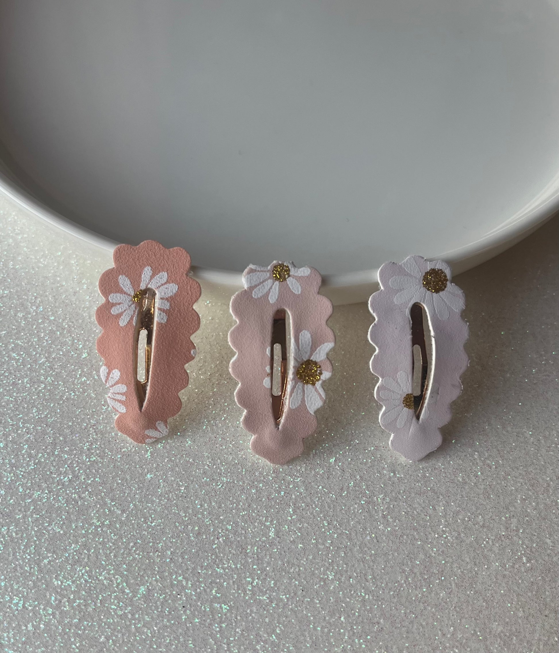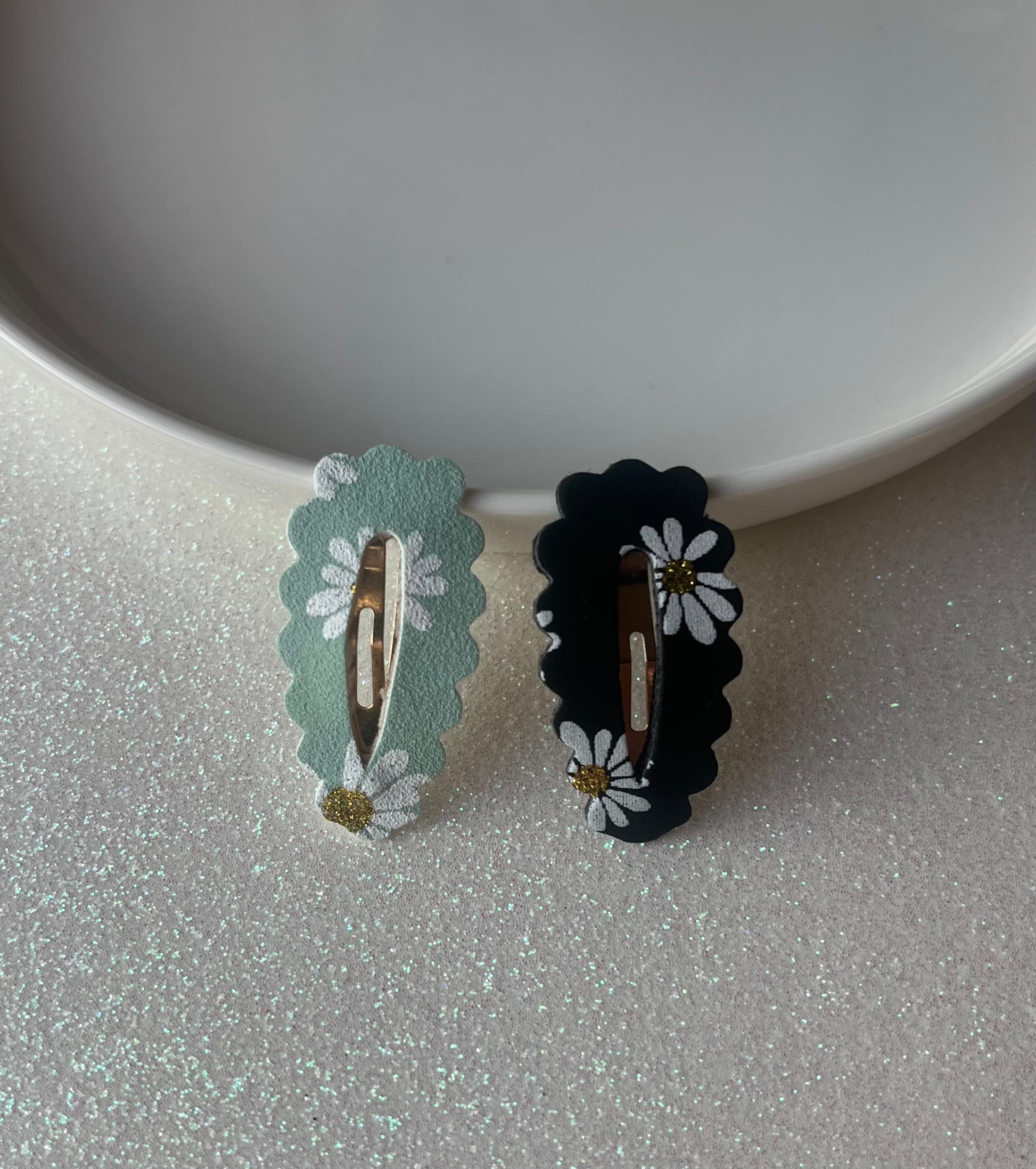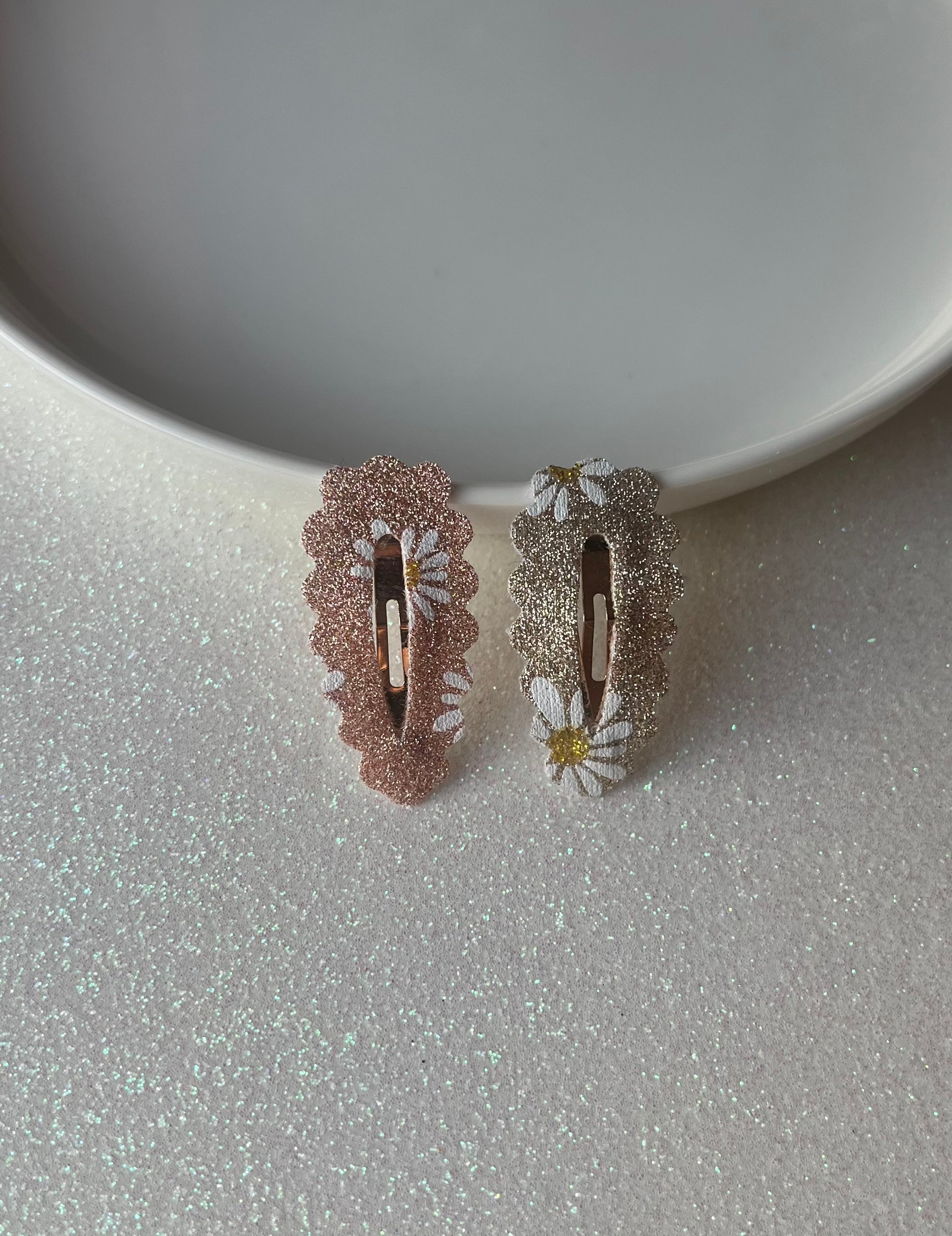 Dit lieve klik-klak haarspeldje met madelief bloem is een subtiele en stijlvolle toevoeging aan elke outfit. Het goudkleurige speldje is bekleed met zacht materiaal en afgewerkt met een vrolijke madelief bloem met een sprankelend hartje.