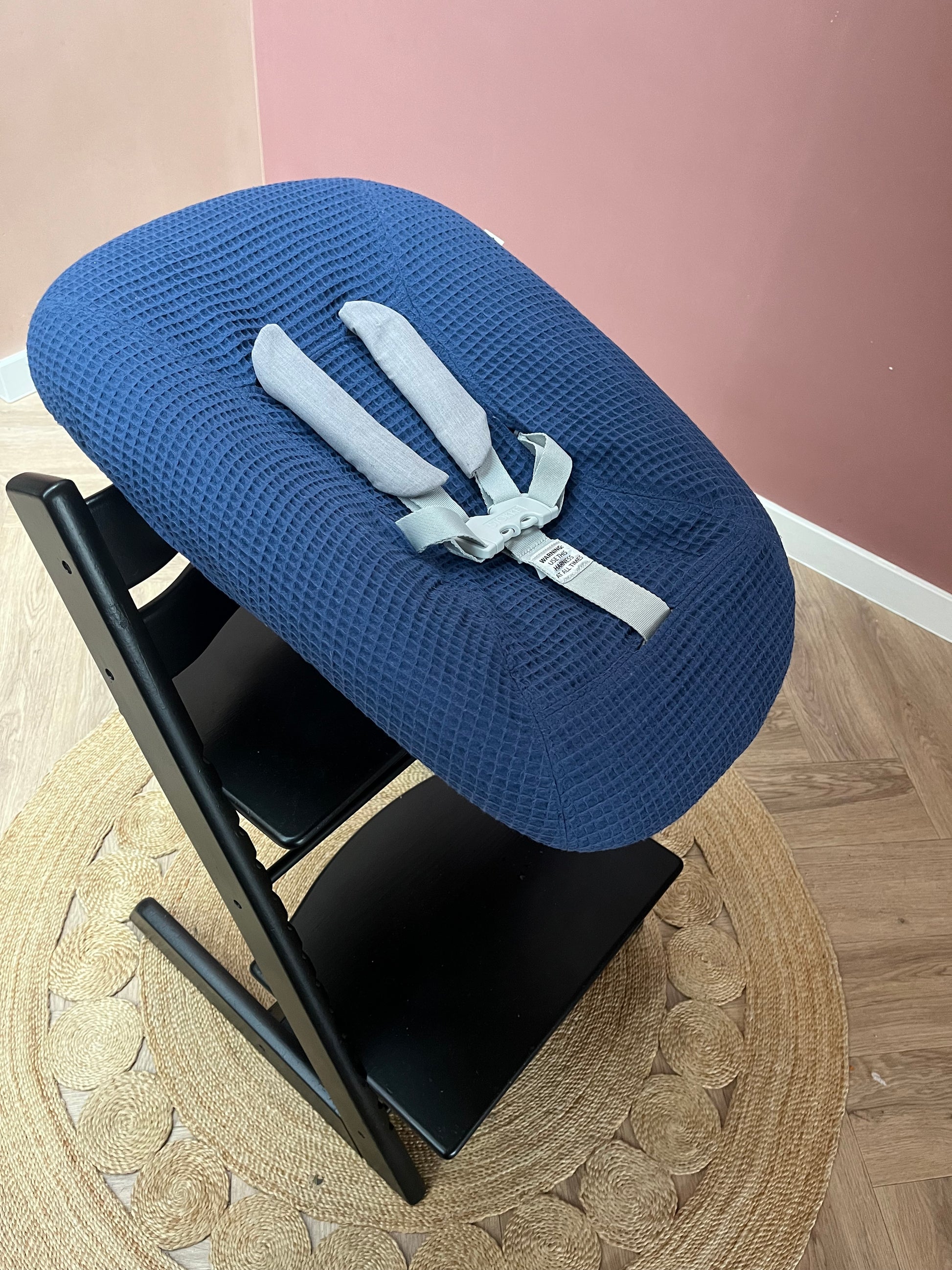 Geef je Stokke newborn stoel een zachte, stijlvolle upgrade met deze prachtige hoes van wafelkatoen. De ademende stof voelt comfortabel aan voor je kleintje en zorgt voor een frisse, eigentijdse look in huis. De hoes heeft een diep blauwe kleur.